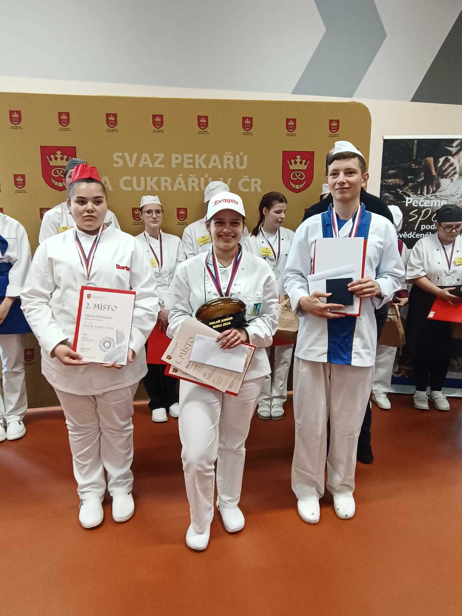 Vítězkou se stala právě studentka naší školy Blanka Mauerová! Po dvoudenním boji zaslouženě získala první místo a odnesla si titul Pekař roku 2026 Junior. A to za svoji důslednou přípravu, přesnost v dodržování technologických postupů, pečlivost, kreativitu, přístup, šikovnost a pevné nervy.